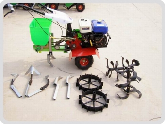 本機(jī)可以配的農(nóng)具有:播種施肥耬、除草輪、耘鋤、旋耕機(jī)等。