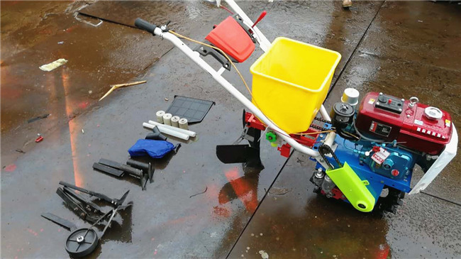 6.簡單合理的支稱,在使用單行播種,施肥,單鏵耘地時,支稱下放,整機能夠水平放置。方便添加種子,化肥。實現(xiàn)一人操作。