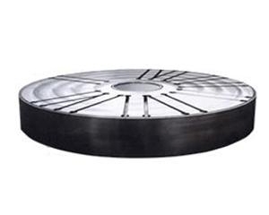 旋轉工作臺材料為高強度鑄鐵HT200-400,工作面硬度為HB770-240。旋轉工作臺在經過人工退火600°-700°和自然時效2-8年后,精度穩定,耐磨性能好。