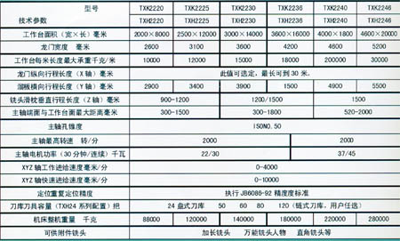 TXK22系列數控定梁龍站多動鏜銑床配置上刀庫后即為TXH22系列定梁龍門移動加工中心,兩種系列產品的其它主參數及性能特點基本相同。