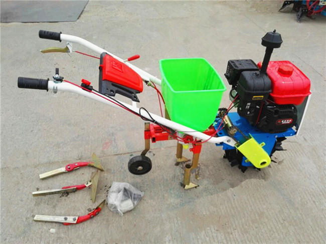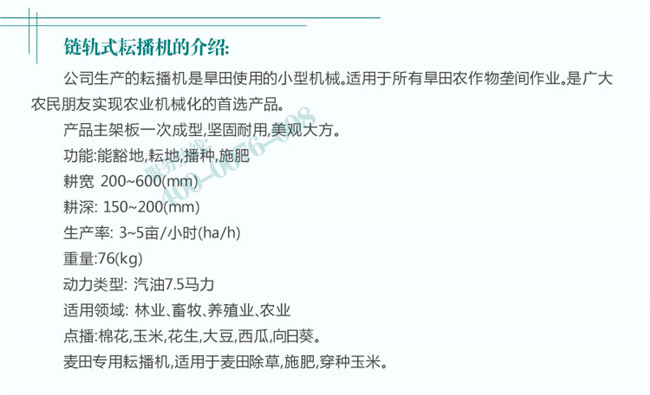 4.化肥斗支架有前后3個螺絲固定,方便拆卸,不使用時可以卸掉,以防碰壞。獨創(chuàng)的分離設(shè)計,三角帶傳動,不存在頂鏈條的問題。播種施肥可雙行,單行,前后使用,耘地施肥可同時進行。調(diào)節(jié)手柄,施肥量5~50千克可調(diào)。更換樓心,可以直播各種農(nóng)作物。