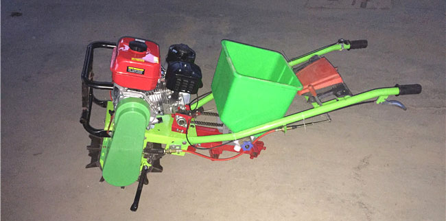 4.小麥播種:采用滾筒式小麥播種機原理,使該機播種量精確,性能可靠,播種后地面平整。播種量10—50斤/畝,播種深度5—15㎝,適應(yīng)小地塊,山地、丘陵等地使用。